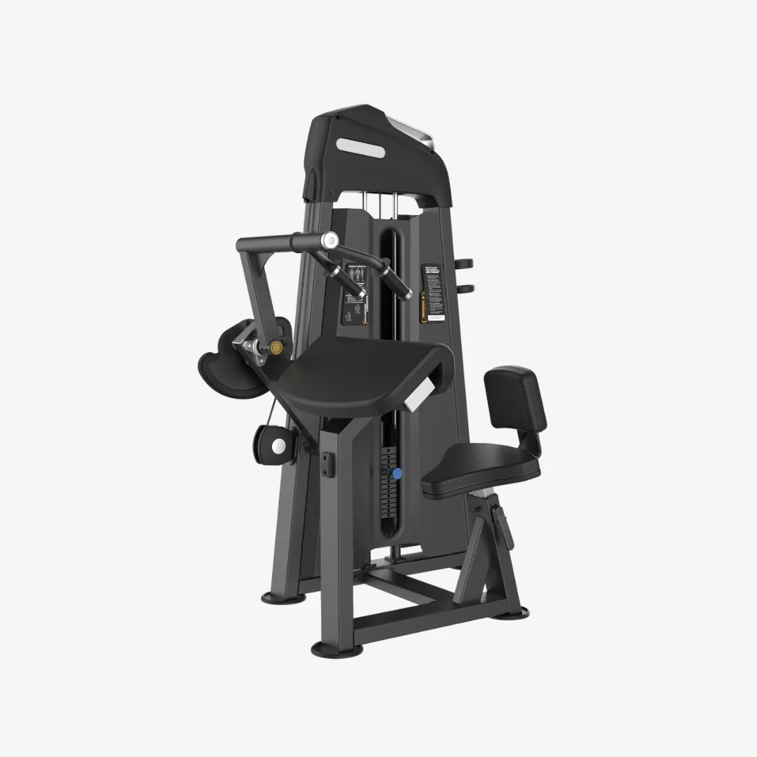 La extensión de tríceps es ideal para hacer de manera guiada y segura el ejercicio correcto de triceps, esta maquina cuenta con asiento ajustable, y almohadilla para reposar los codos, de manera que se mantengan con la técnica correcta. Tiene agarre ajustable para acomodar el rango de movimiento y peso integrado para aumentar fuerza.