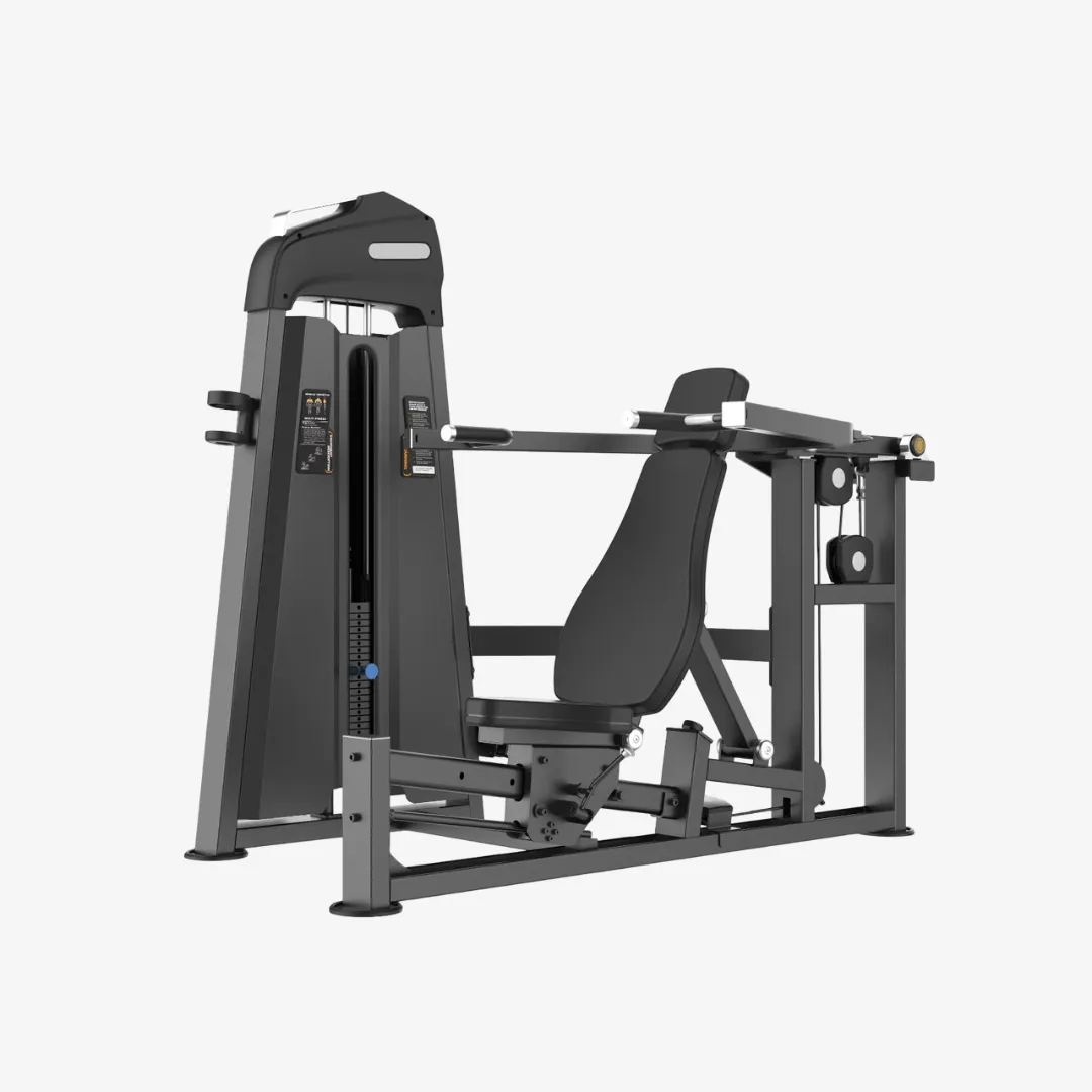 La máquina de press de hombro y pecho te permite trabajar el tren superior de manera efectiva, con un diseño que facilita un movimiento controlado. Cuenta con peso integrado, lo que te permite ajustar la resistencia según tu nivel para un entrenamiento completo y seguro. Tiene asiento ajustable fácil de utilizar para variar entre los dos ejercicios.