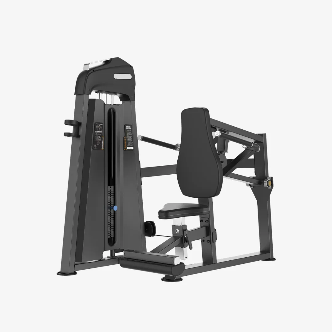 Esta máquina esta diseñada para replicar de manera guiada y cómoda el ejercicio de fondos para triceps y pecho, la posición sentada de este equipo ayuda a que el ejercicio sea más seguro, además el peso integrado garantiza la ganancia de fuerza y la carga controlada sin dañar articulaciones o ayuda de un spotter. Tiene asiento ajustable y reposapiés para mayor estabilidad.