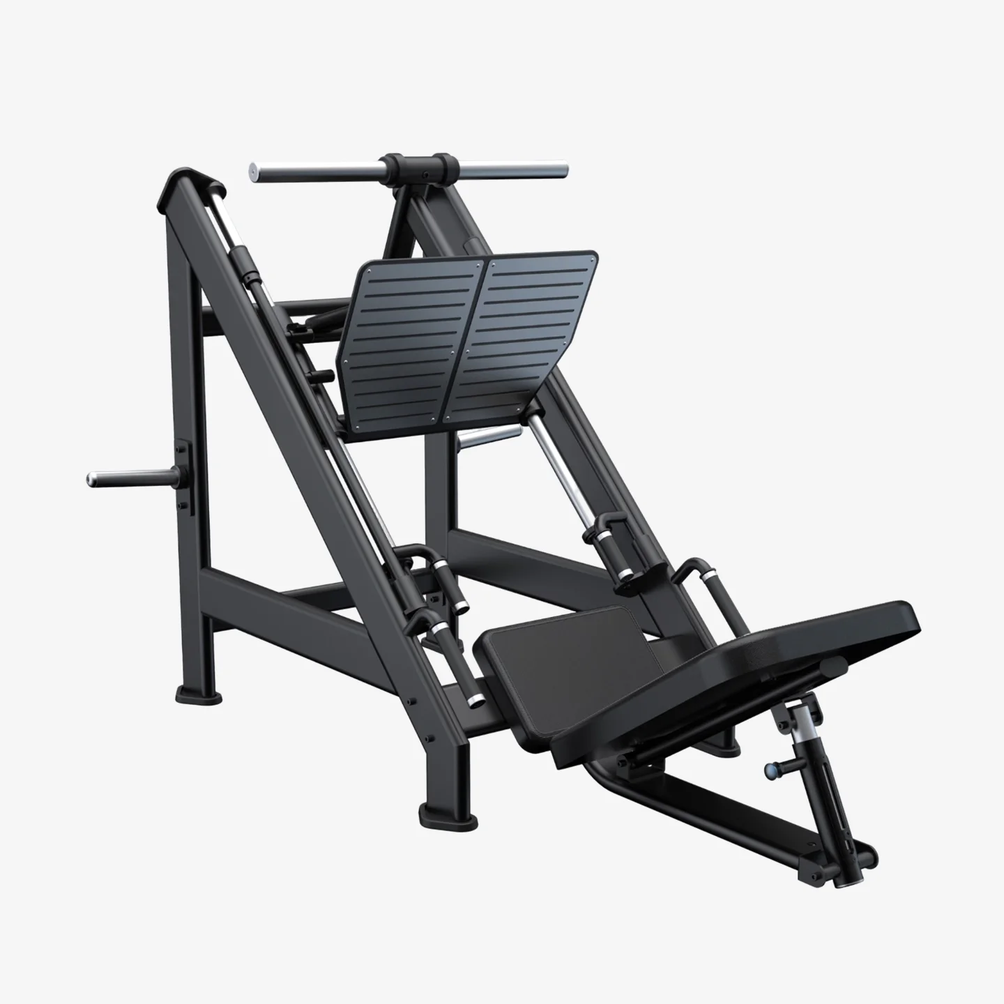 La prensa para pierna de 45° de peso libre permite cargar gran cantidad de peso, de manera guiada y controlada, lo que ofrece mayor seguridad en cada repetición del entrenamiento. Esta máquina permite ajustar el respaldo, lo que ayuda a enfocar los músculos de las piernas y se adapta también a las distintas alturas del usuario. Beneficia a la ganancia de fuerza y volumen muscular.